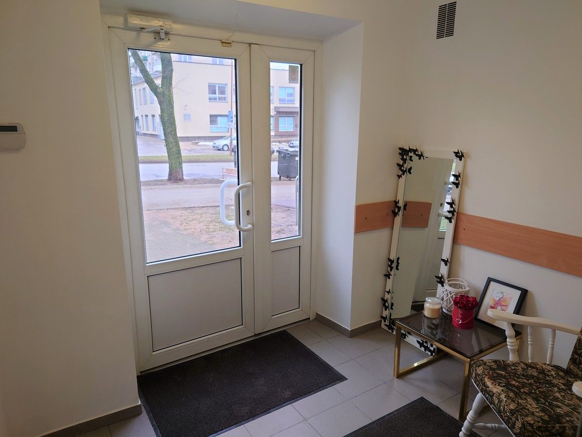 Išnuomojamas labai geras kabinetas 29,44 m² su pagalbinėmis patalpomis Ežero g. 16. Patalpos randasi pirmame daugiabučio namo aukšte, atskiras įėjimas iš gatvės pusės, galima reklama ant pastato sienos, plastikiniai langai, langai randasi iš kiemo pusės, įrengta priešgaisrinė ir apsaugos signalizacija, apsauginės žaliuzės, vertikalios žaliuzės ant langų, visos miesto komunikacijos, patalpose yra kriauklė. Patalpos nuomojamos kartu su bendro naudojimo patalpomis (virtuvė, 2 WC, koridorius, foje), buvęs termomasažų kabinetas, galimybė tęsti šią veiklą. Šalia kitose patalpose įsikūrusios įmonės teikiančios grožio ir kosmetikos paslaugas, draugiškos kolegės. Patalpose išvedžiota elektros instaliacija iki darbo vietų, individuali elektros apskaita. Namas mūrinis 1962 m. statybos, tvarkingas, automobilių stovėjimo aikštelė. Patalpos randasi labai geroje vietoje šalia pagrindinės Vilniaus gatvės, netoli visuomeninio transporto stotelės, šalia Chaimo Frenkelio rūmai, Sodros pastatas, vaikų ugdymo įstaigos ir maisto prekių parduotuvės. Nuomos kaina 220 Eur plius komunaliniai mokesčiai, sutartis ne mažiau metų, reikalingas depozitas, turto mokestis į nuomos kainą įskaičiuotas. Esant poreikiui, galimybė keisti išplanavimą. Daugiau informacijos tel. 867145995.